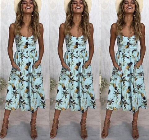 Vintage Casual Sundress Female Beach Dress Midi Button Backless Polka Dot Striped Women Dress Summer 2020 Boho Sexy Floral Dress